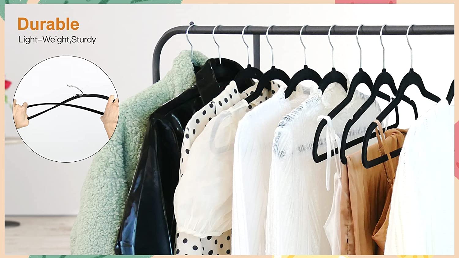 - Soft Velvet & No Mark – Premium velvet different from plastic or metal leaves no crease and the perfect shoulder contour help preserve clothes’ shape when you fold them over on the clothes and are ready to wear. Great clothes hangers for suits, shirts, coats, sweaters, sweatshirts, skirts, dresses, and pants, etc
